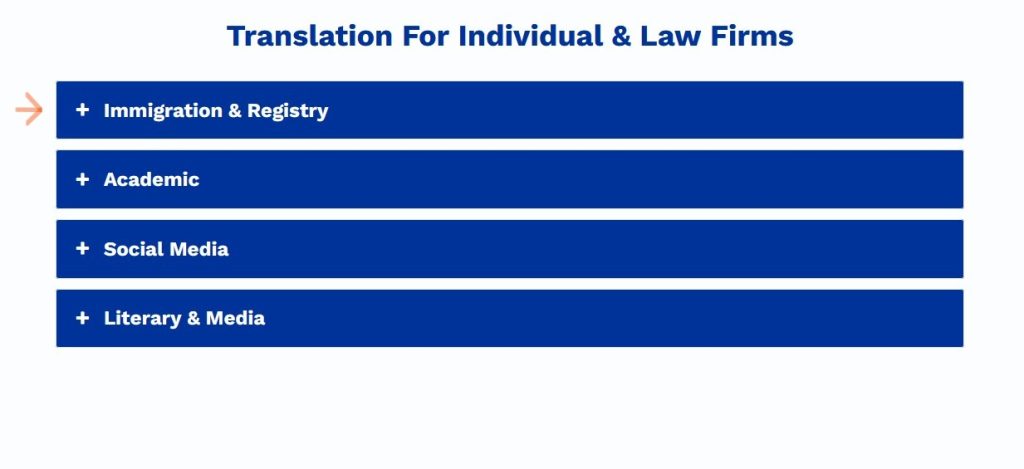 Step 1. Click on the “Translator” box. Left for a certified translator and right for a specialized translator.