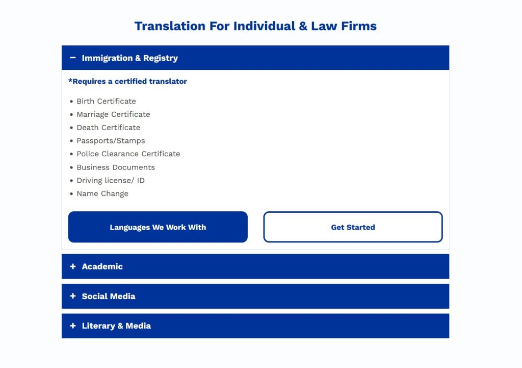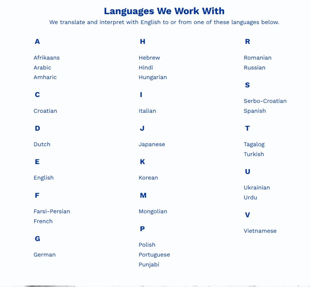 Step 3. Select the left box “Languages We Work With”, and find the languages that we translate.