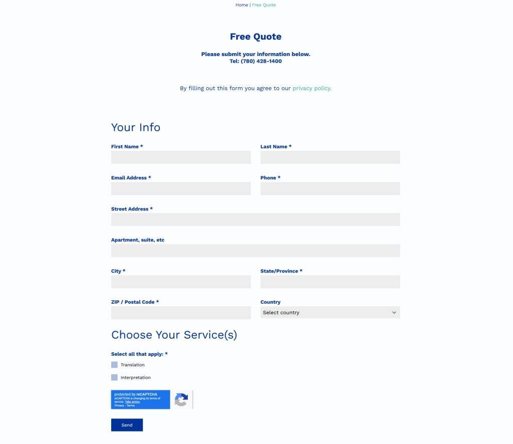 Step 3. Select the “Translation” box for a translation quote, or “Interpretation” box for an Interpretation quote.
